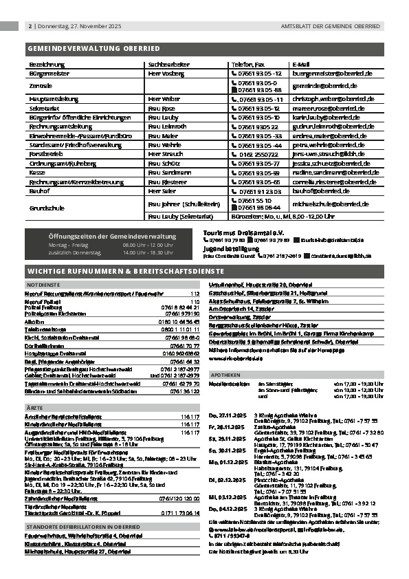 Die technische Störung aufgrund des Kabelschadens wurde behoben. Die Gemeindeverwaltung Oberried ist ab sofort wieder telefonisch erreichbar. Wir bedanken uns herzlich für Ihr Verständnis während der Zeit der Einschränkung. Ihre Gemeindeverwaltung Oberried