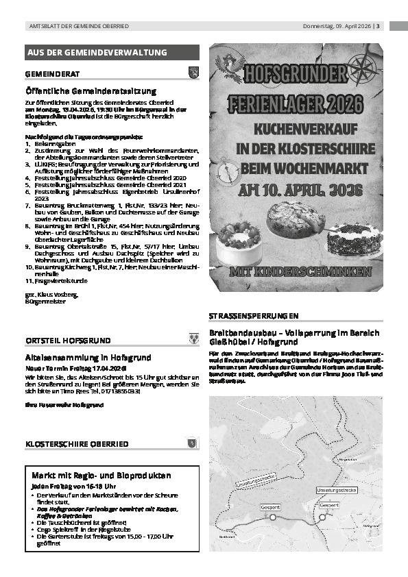 Wo? Bürgersaal, Klosterschiire | Veranstalter: Gemeinde OberriedFr, 17.04.2026