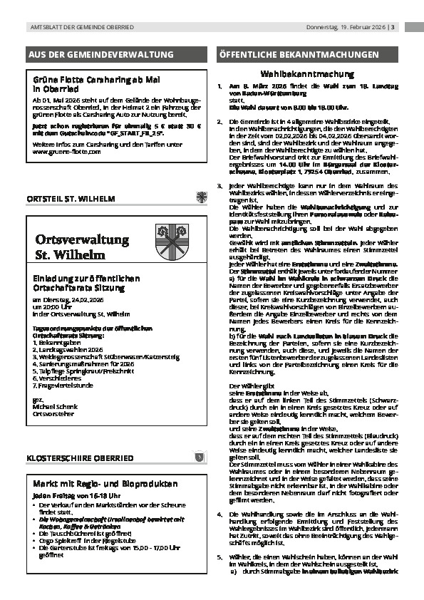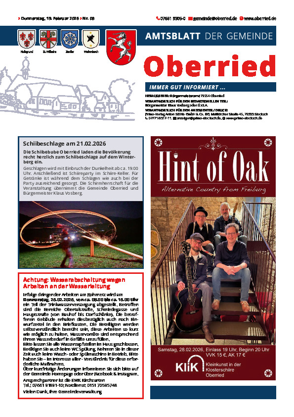 Wo? Bürgersaal, Klosterschiire | Veranstalter: Gemeinde OberriedDo, 05.03.2026 | ab 18:00 Uhr