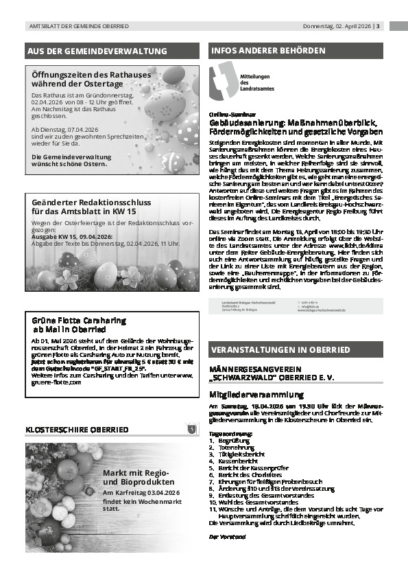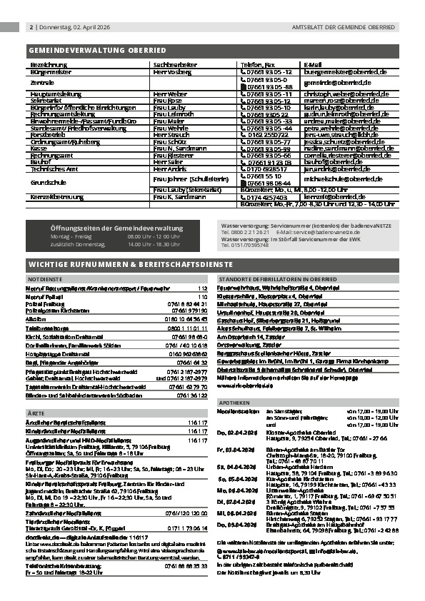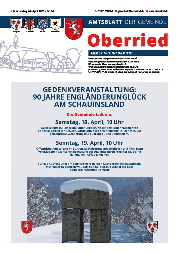 Gemeinsam mit den Gemeinden Buchenbach, Kirchzarten und Stegen hat die Gemeinde Oberried eine neue Auflage der Bürgerborschüre "Dreisamtal" herausgegeben. Die Bürgerbroschüre ist ein nützliches Nachschlagewerk für die Bürgerinnen und Bürger des Dreisamtals sowie an alle gedacht, die sich für das Dreisamtal interessieren. Stöbern Sie in der interaktiven Ausgabe der Broschüre.