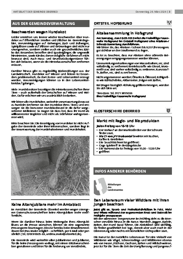Aufgrund der Witterung findet die Sammlung am Samstag, den 28.03.2026 nicht statt. Der neue Termin wird über das Amtsblatt bekannt gegeben, sobald dieser feststeht.